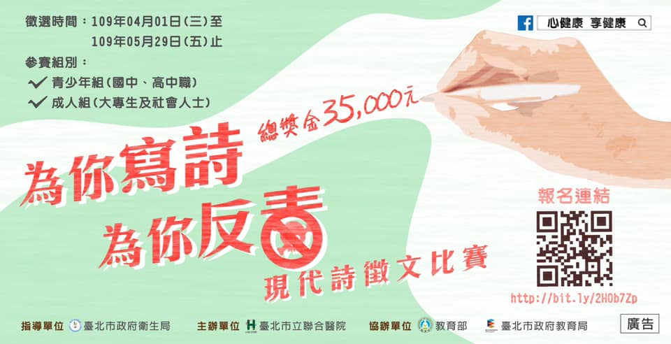 臺北市立聯合醫院辦理「為你寫詩·為你反毒」現代詩徵文比賽活動