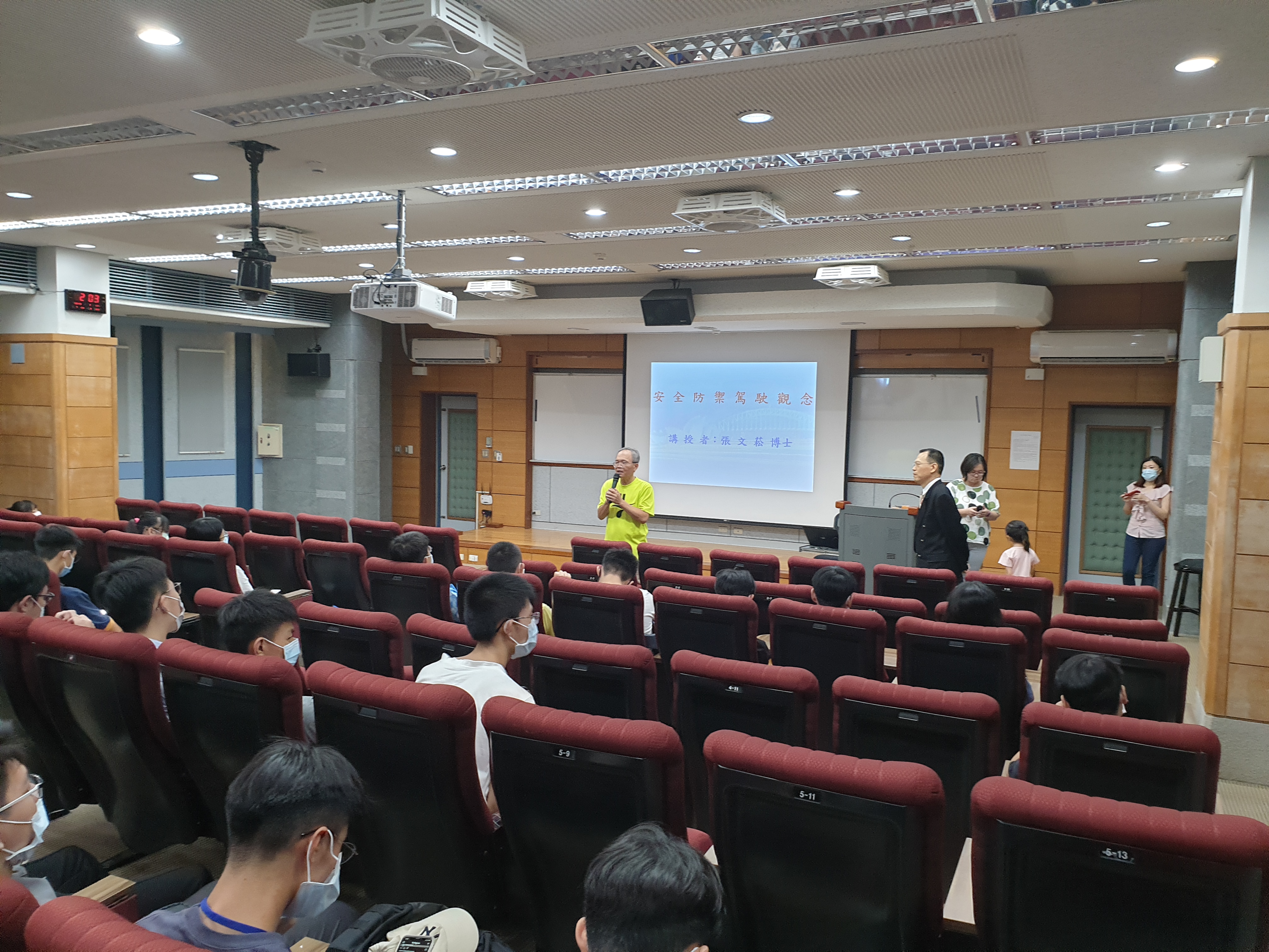 109年《交通安全週》於109年9月11日假生醫理工學院大一新生營活動,邀請中央警大張文菘博士實施「防衛駕駛」講座實施情形。