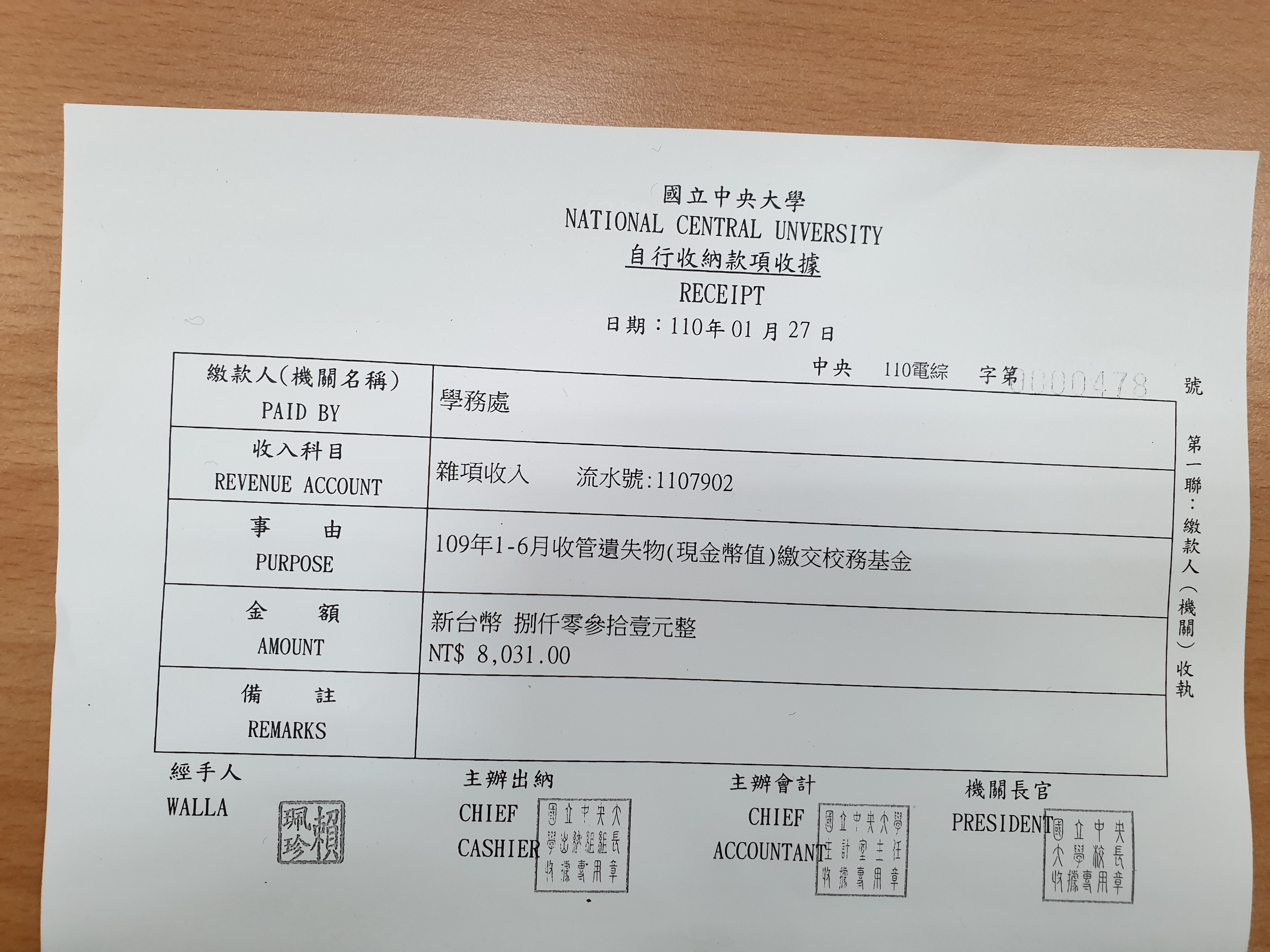 本組收管109年1-6月(現金幣值)暨物品逾時認領處理案公告。