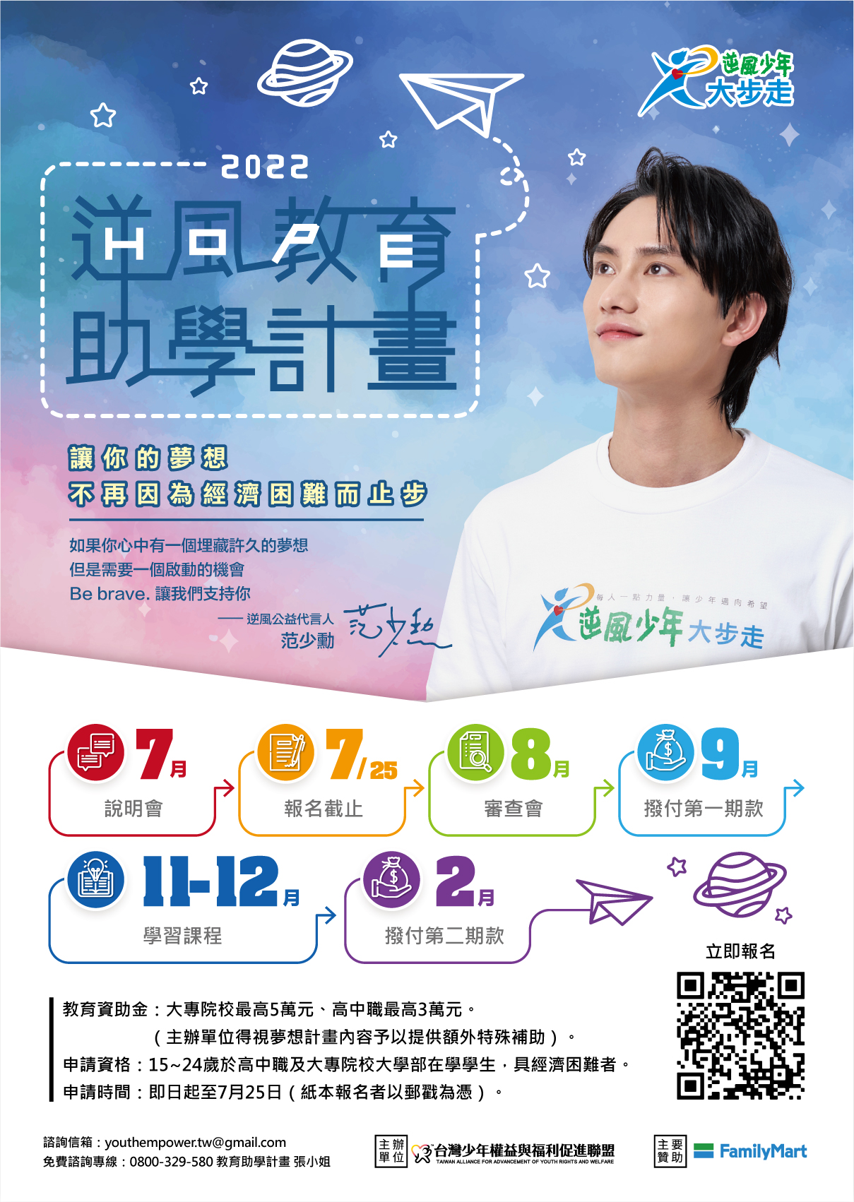 111學年度逆風教育助學計畫即日起至111年7月25日開放線上申請!詳情請參考附件。