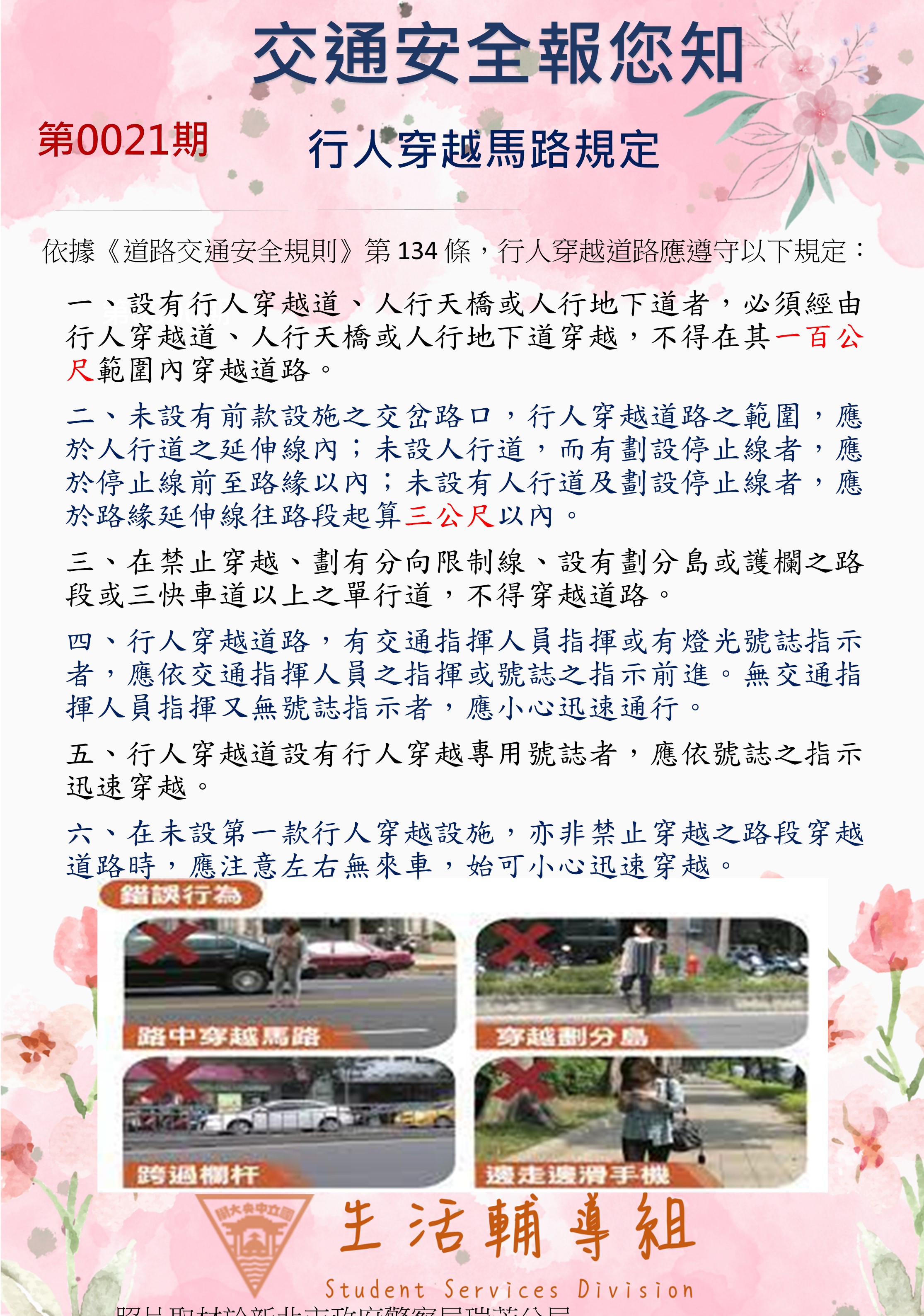 依據《道路交通安全規則》第 134 條,行人穿越道路應遵守以下規定