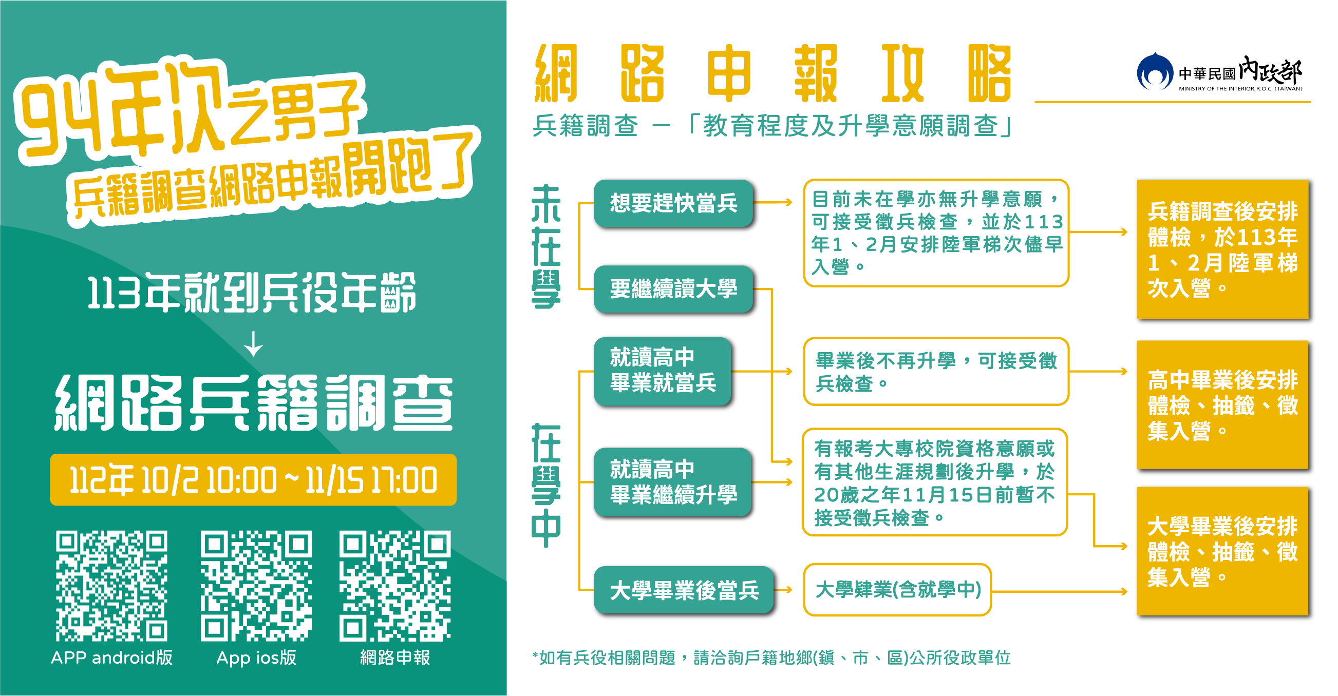 內政部「94年次徵兵及齡男子兵籍調查線上申報作業」
