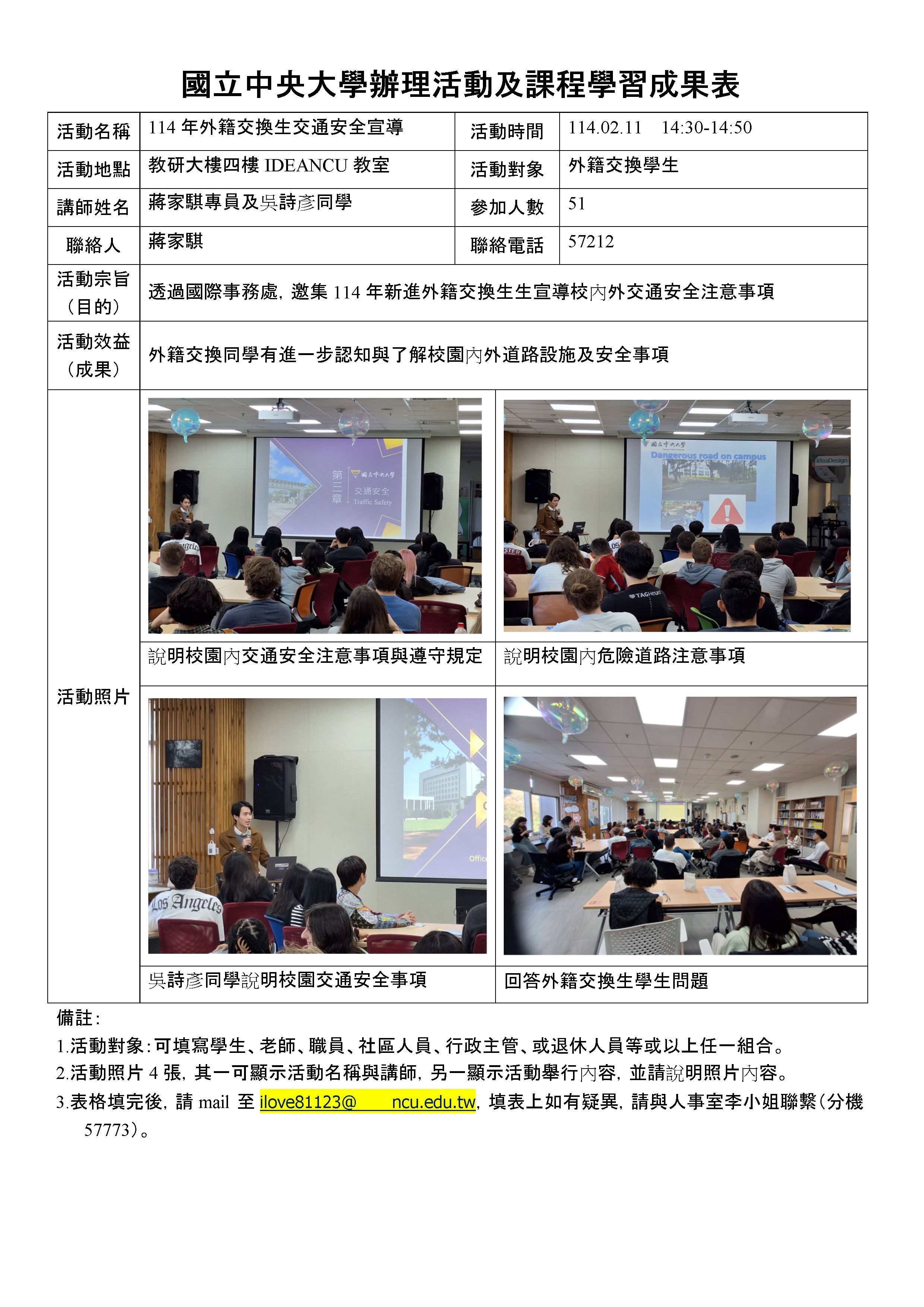 114年外籍交換生交通安全宣導成果報告