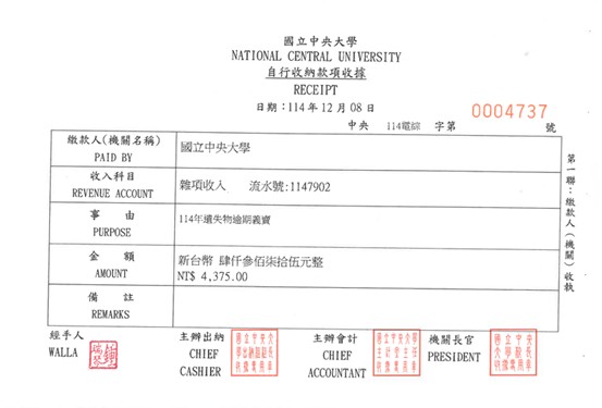 114年遺失物逾期義賣4375元上繳校務基金