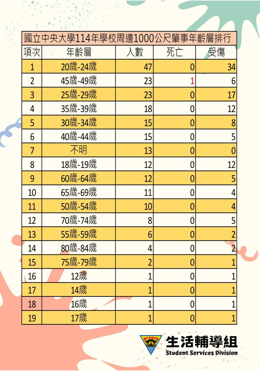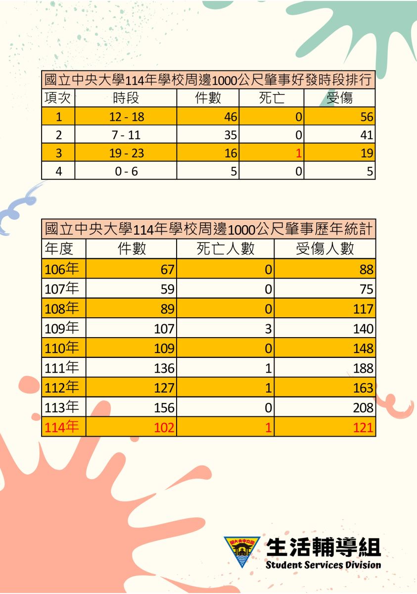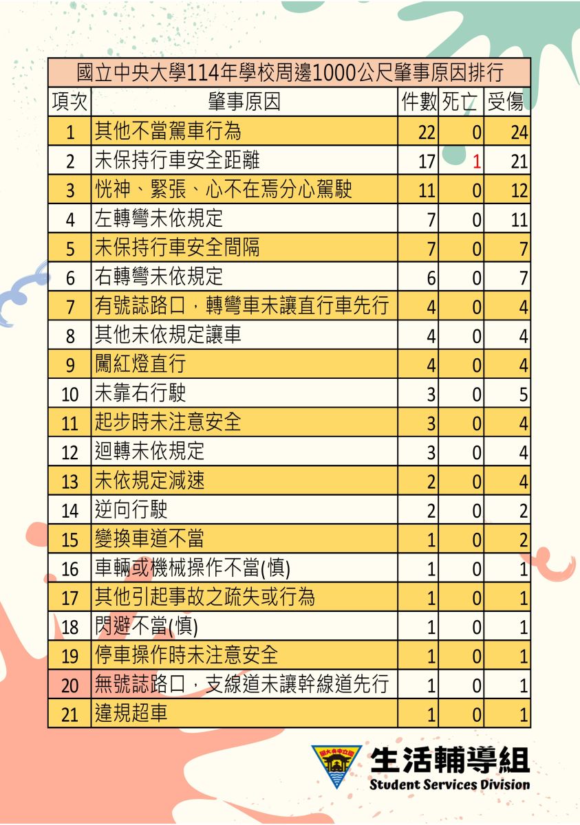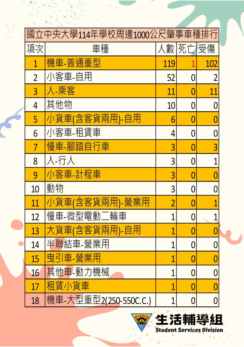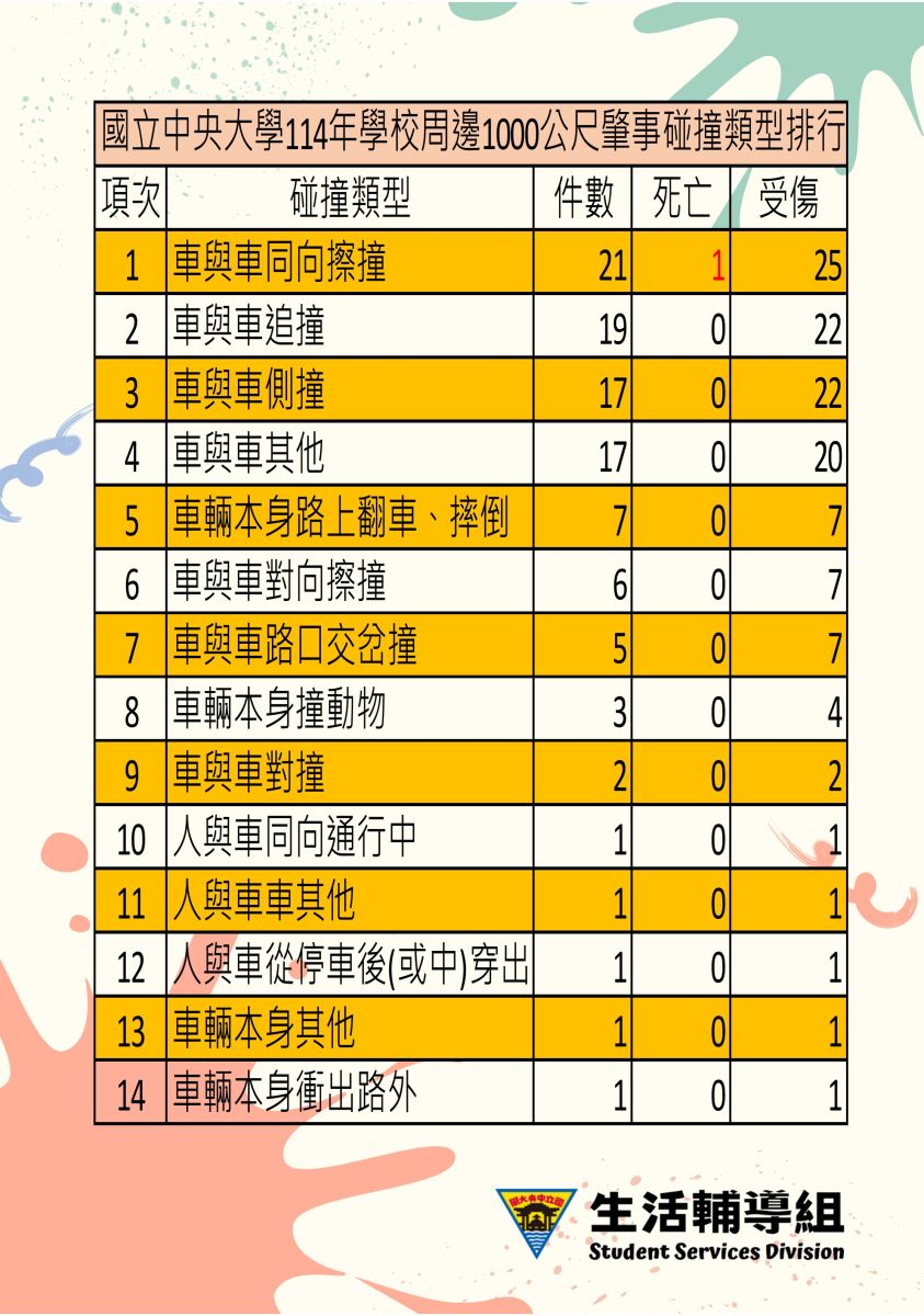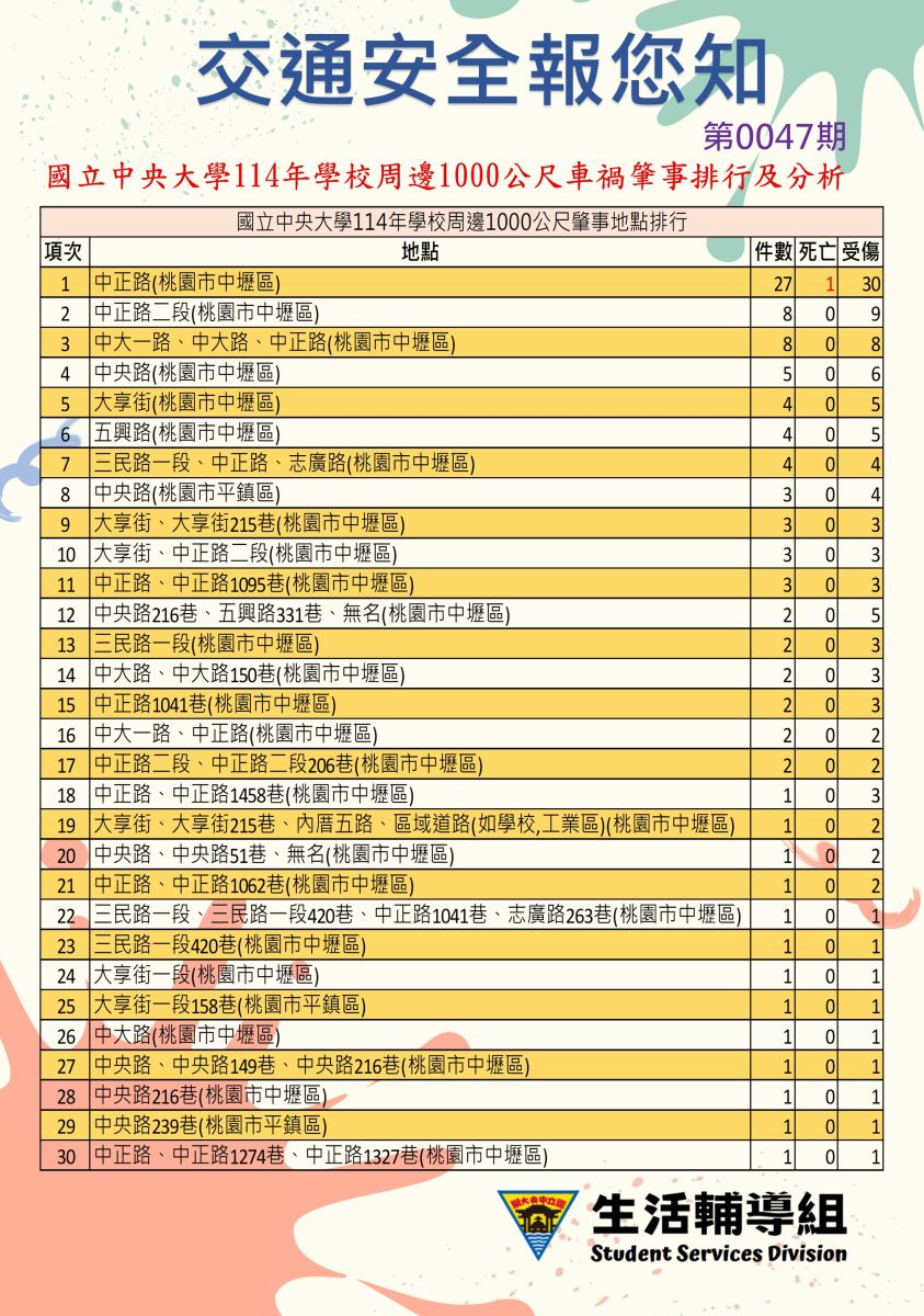 交通安全報您知第0047期「國立中央大學114年學校周邊1000公尺車禍肇事排行及分析」