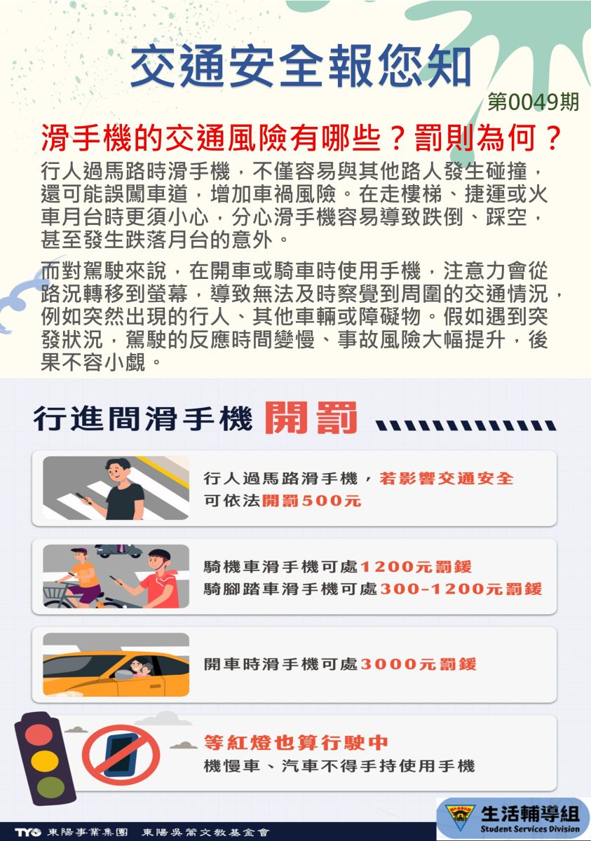 交通安全報您知 第49期 「滑手機的交通風險有哪些?罰則為何?」